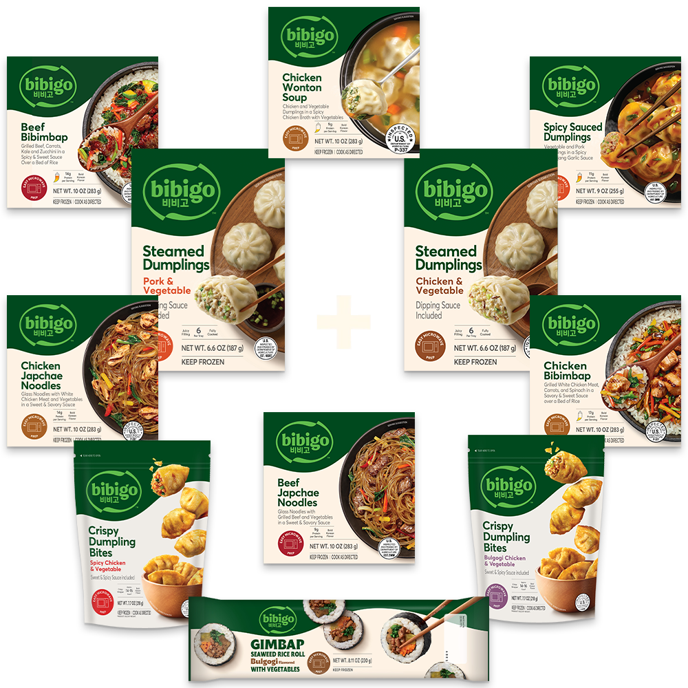 • Taste It All – Get all 11 of our single-serve favorites in one bundle, from japchae noodles and rice bowls to crispy dumpling bites and our brand-new gimbap.